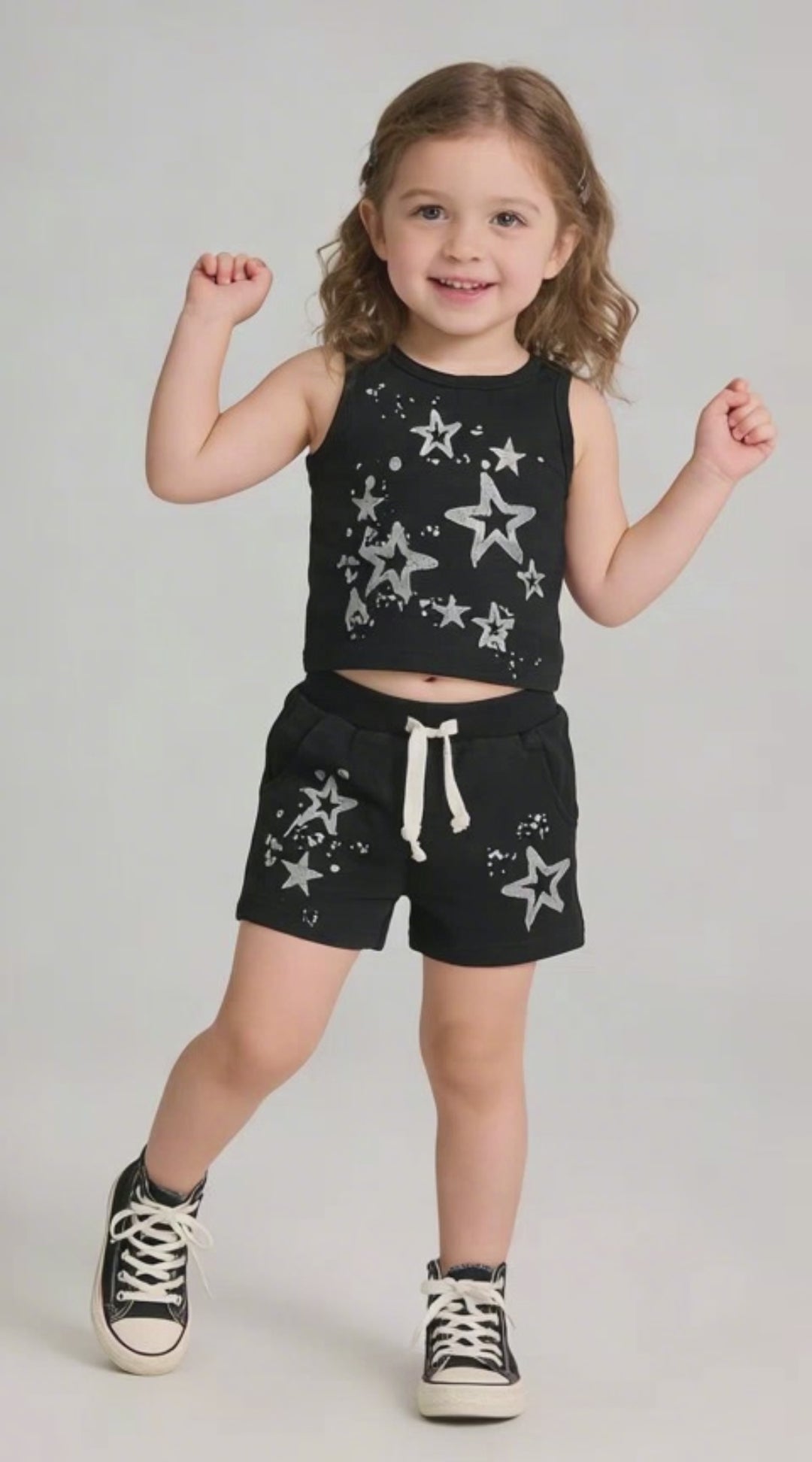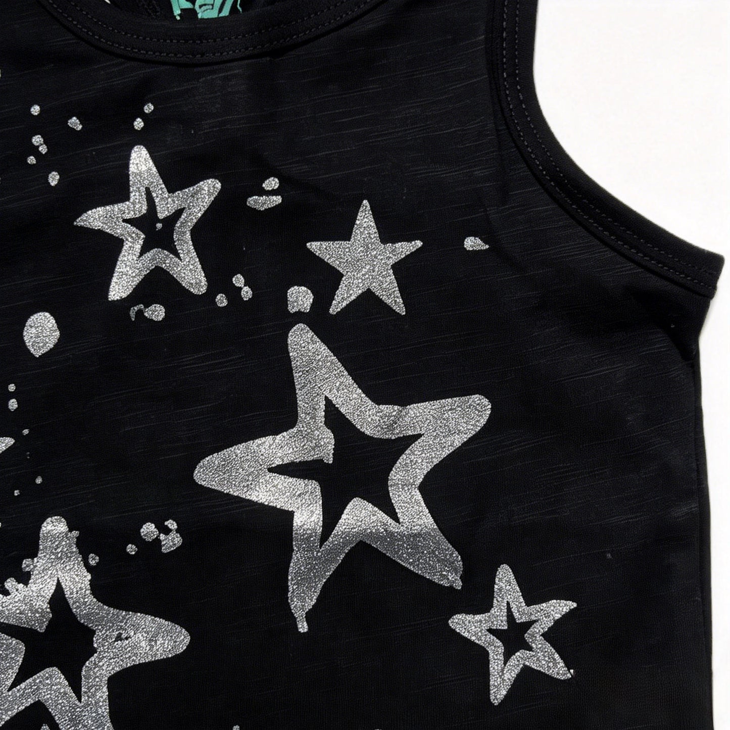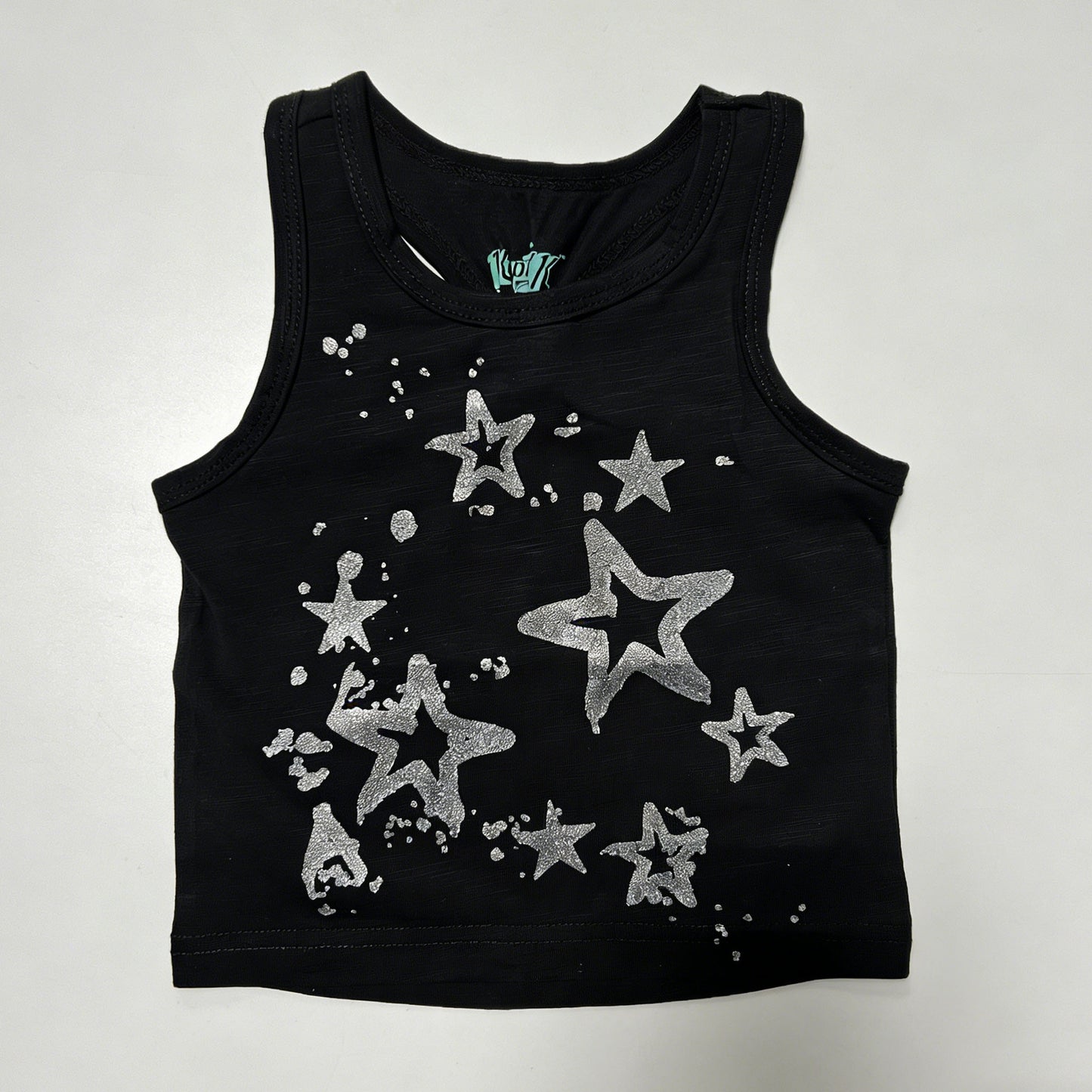 Kapital K Girls Black Glitter Star Tank Top, 12m-6X, Sleeveless Cotton Tank with Silver Star Splatter Print