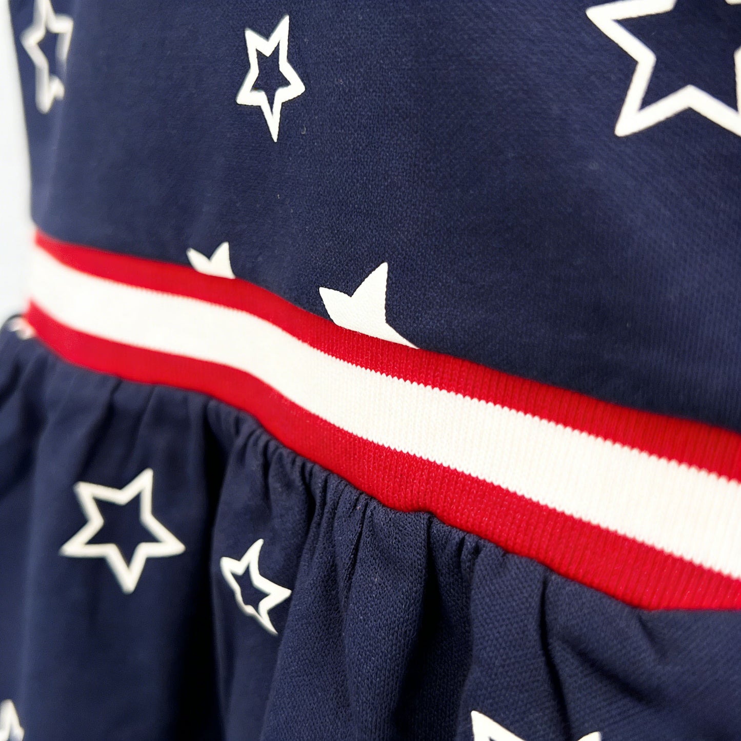 Patriotic Colorway: Navy, red, and white with star print for a festive look
