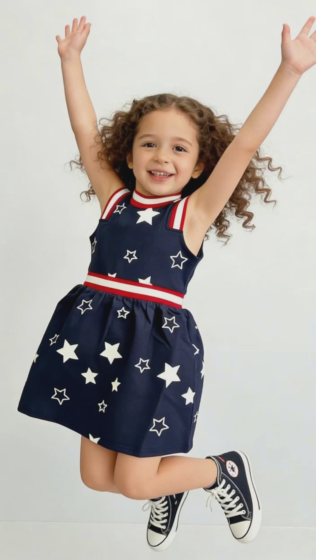 This star-spangled dress is endlessly versatile, making it a go-to for every occasion. Dress it up with white tights and sandals for family photos, 4th of July parades, or Easter gatherings; keep it casual with sneakers for park days or playdates. It also works beautifully as a layering piece under a denim jacket or cardigan for cooler spring and summer evenings.