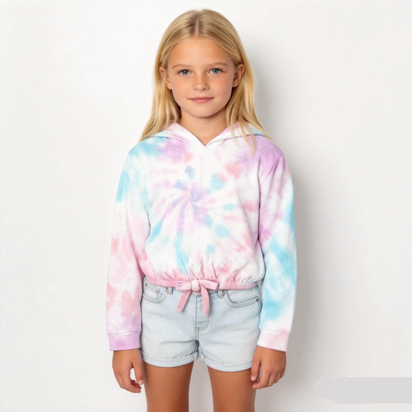 - Playful Retro Design: The vibrant pastel spiral tie-dye pattern and cropped, ruffled hem create a dreamy, nostalgic look that’s perfect for little trendsetters who love playful style.