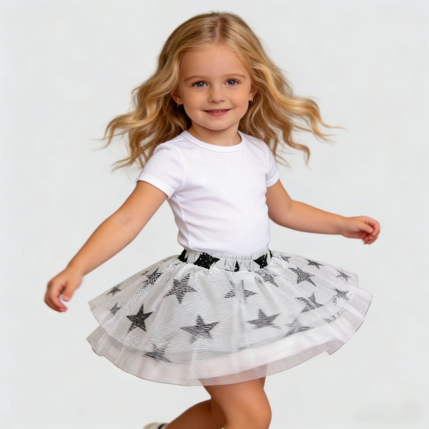 - Whimsical Playful Design: The layered white tulle and black star prints create a light, airy, dance-ready look that’s perfect for little trendsetters who love playful style.