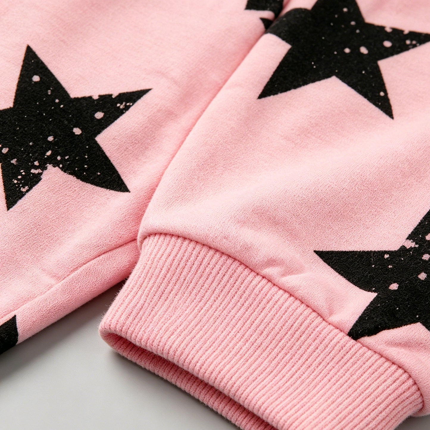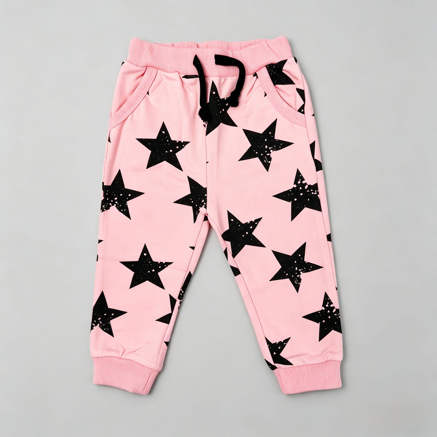 Kapital K Girls Pink Star Print Jogger Pants, 6/9m-24m, Elastic Waist with Black Drawstring, Soft Cotton Casual Pants for Baby Girls