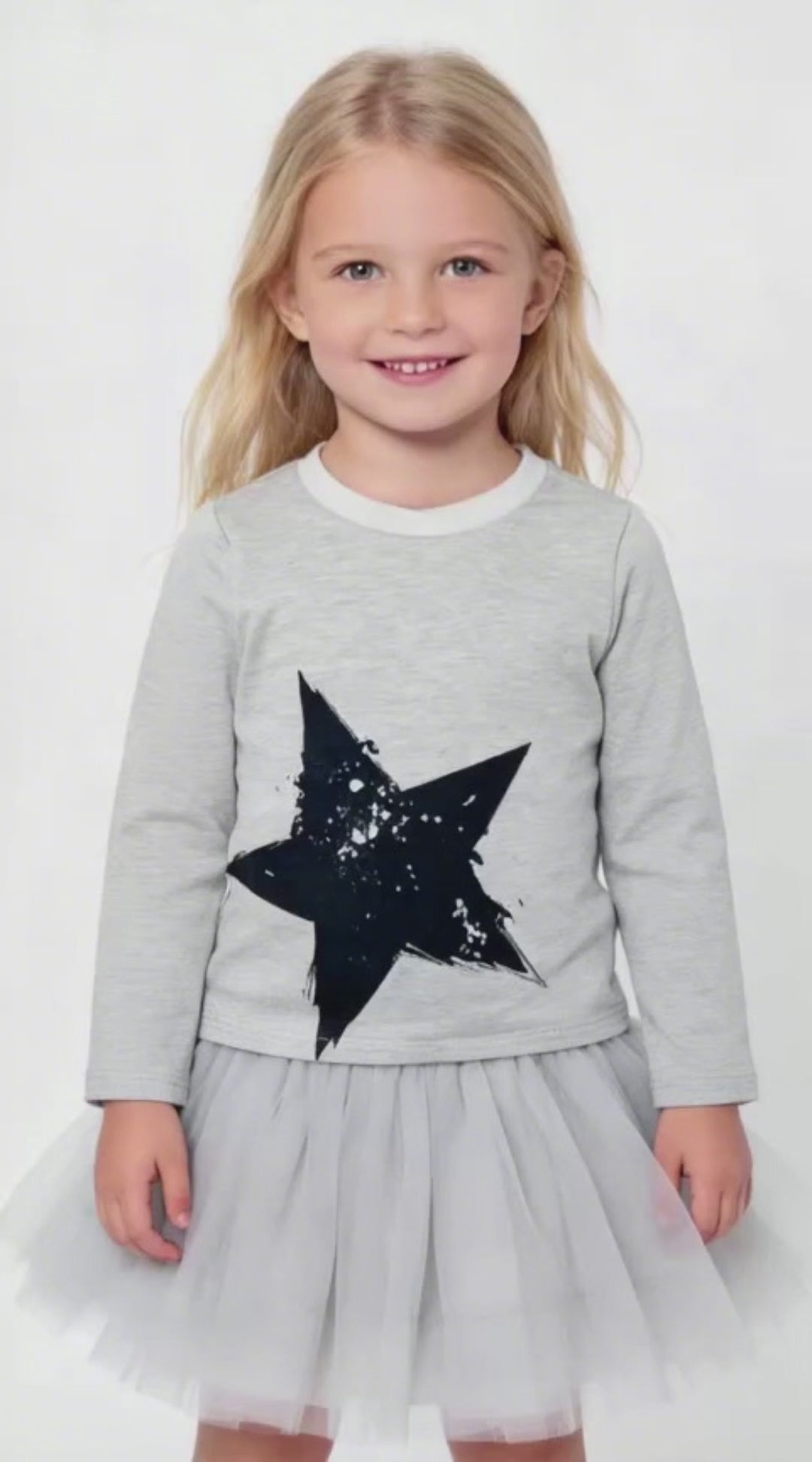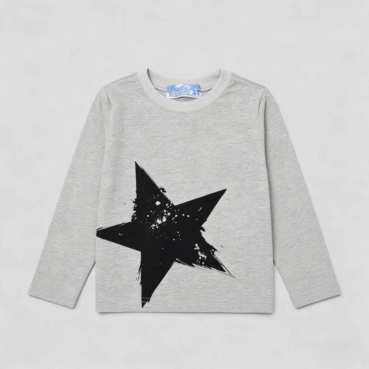 - Artistic Minimalist Design: The bold black paint-splatter star graphic on a heathered grey base creates a playful, edgy look that’s perfect for little trendsetters who love understated style.