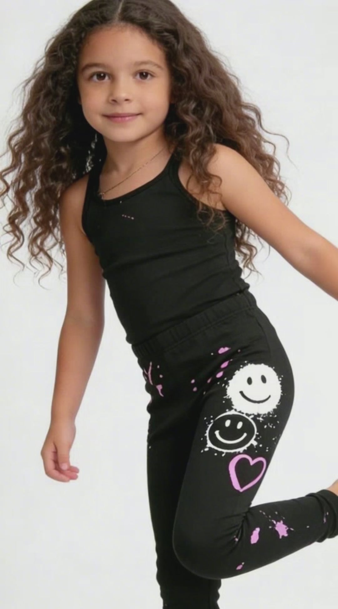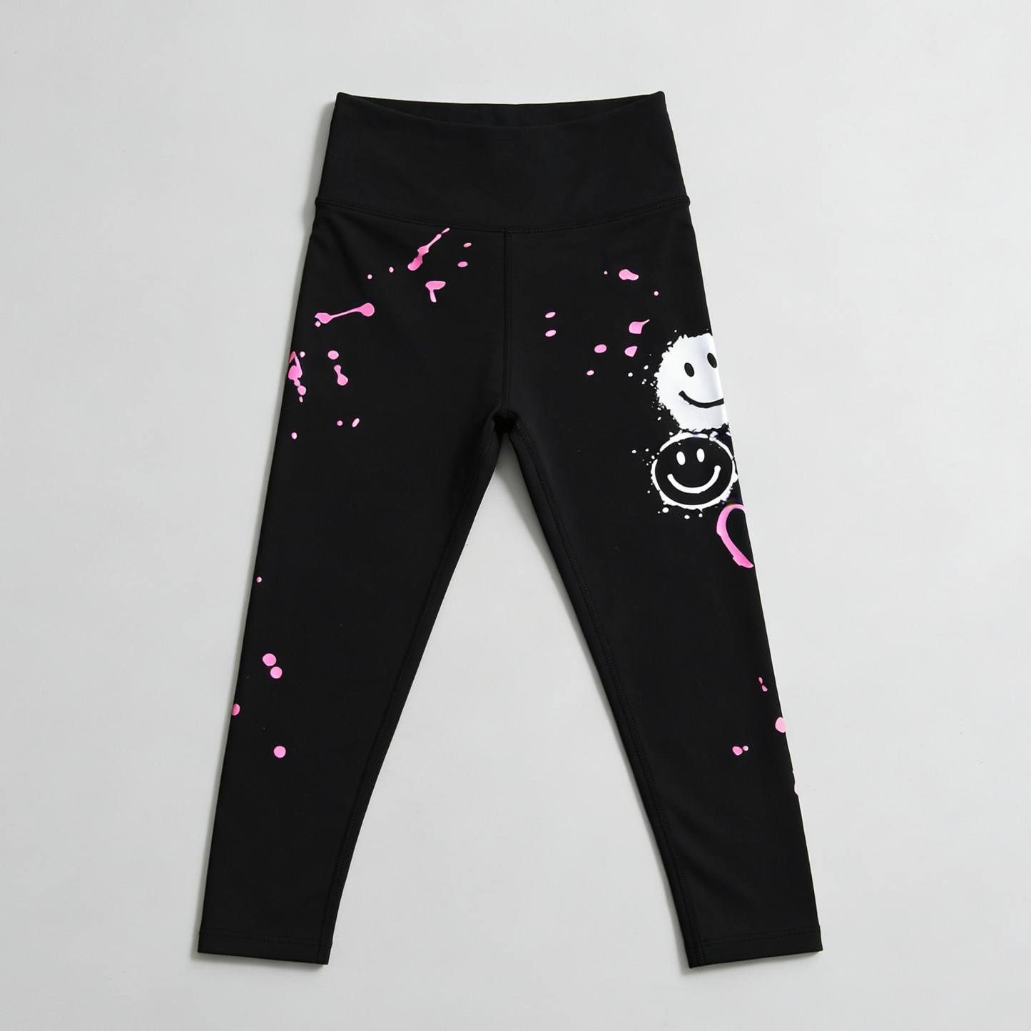 Kapital K, Girls, Toddler & Little Girl, Leggings, Smiley & Pink Paint Splatter Print, Black 12m-6x